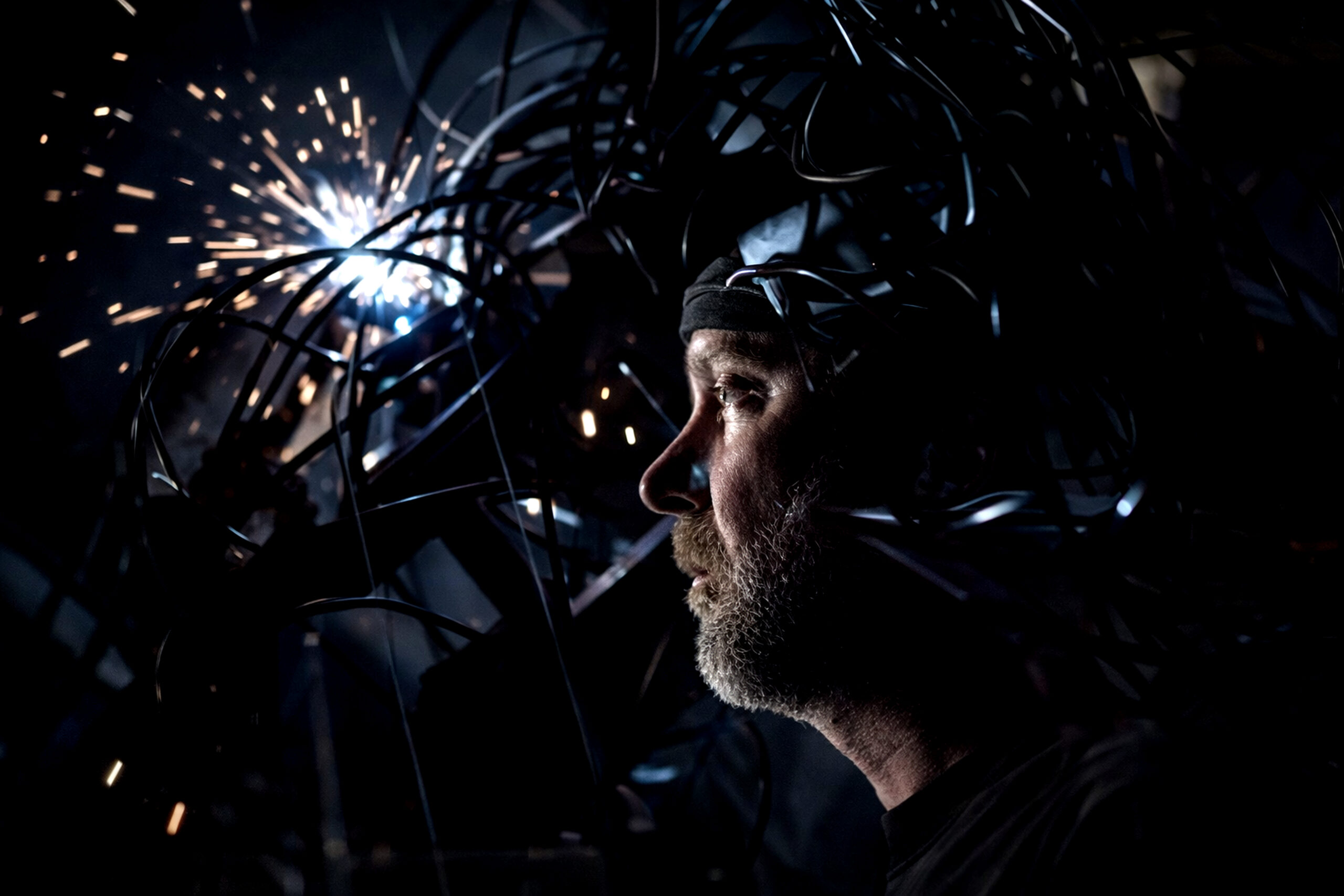 Jason Myers is a contemporary American artist whose work explores human presence through a dynamic engagement with material, structure, and space. Working across sculpture, painting, printmaking, and digital media, Myers creates open, relational environments where form emerges through process and perception. His practice centers on the tension between fragility and endurance, often returning to the upright figure as a site where human awareness meets space.