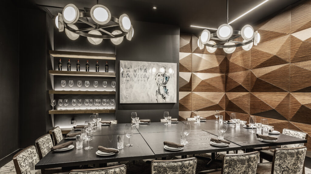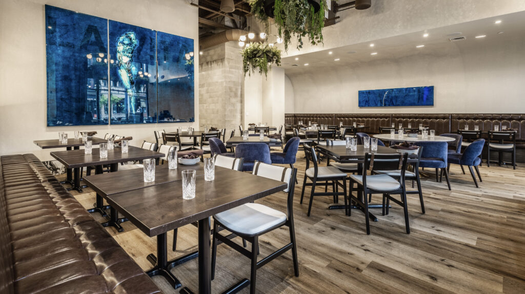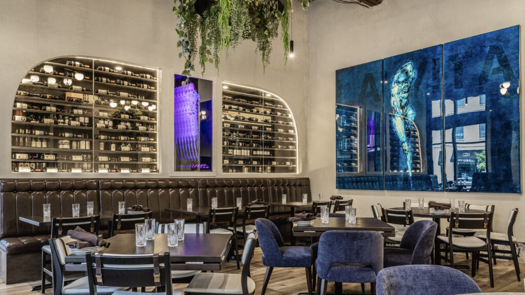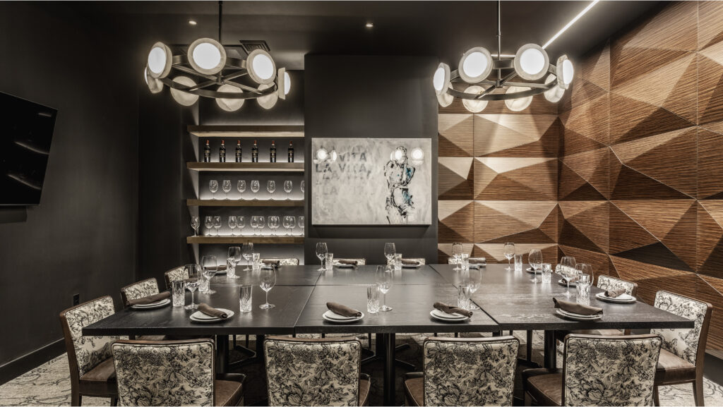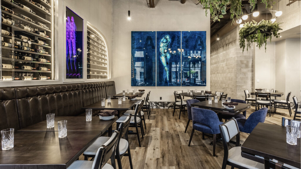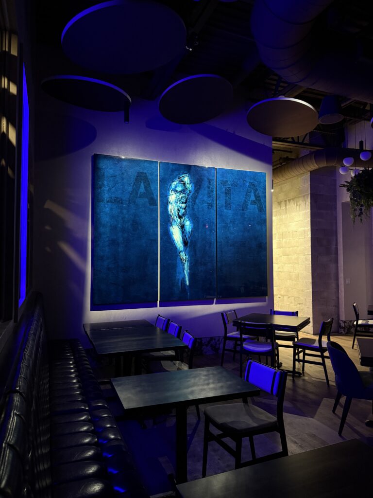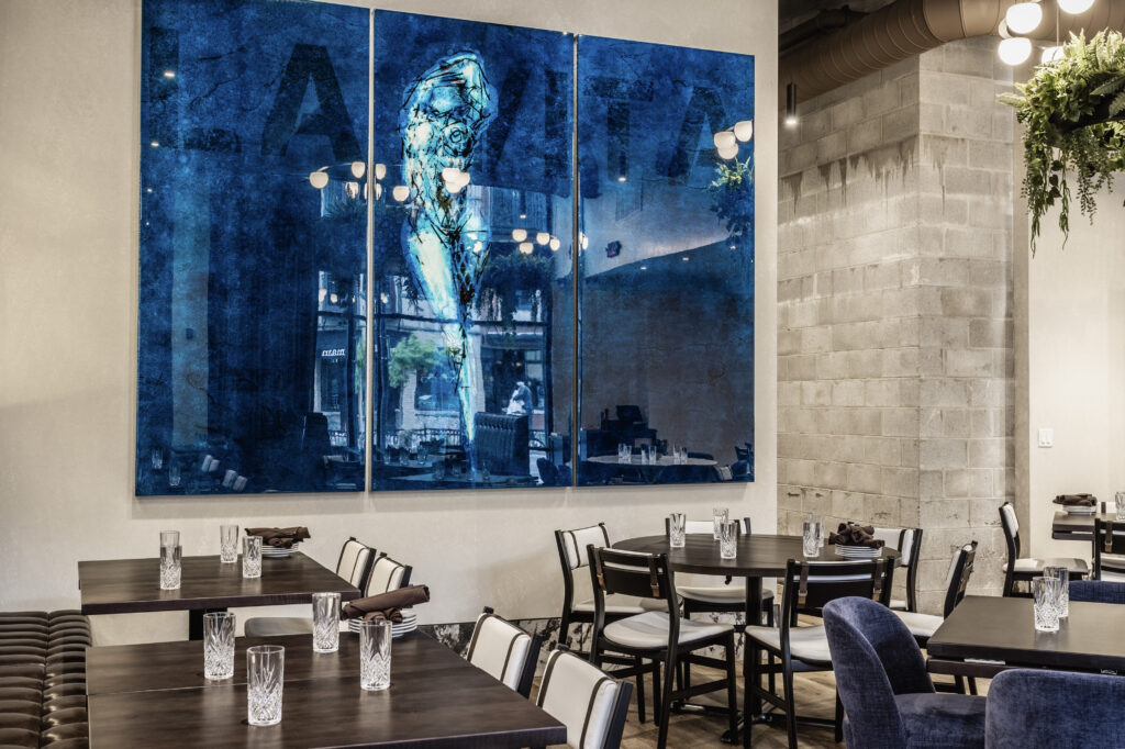 Created for TRE on Main in Carmel, Indiana, La Vita draws inspiration from Italian elegance and the vibrant spirit of owner Chris Evans. The series celebrates life’s richness through layered color, classical form, and atmospheric depth. The central triptych and custom infinity glass sculpture evoke a sense of timeless presence—where tradition meets modern energy, and every moment feels alive.