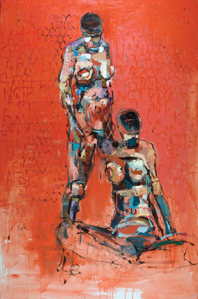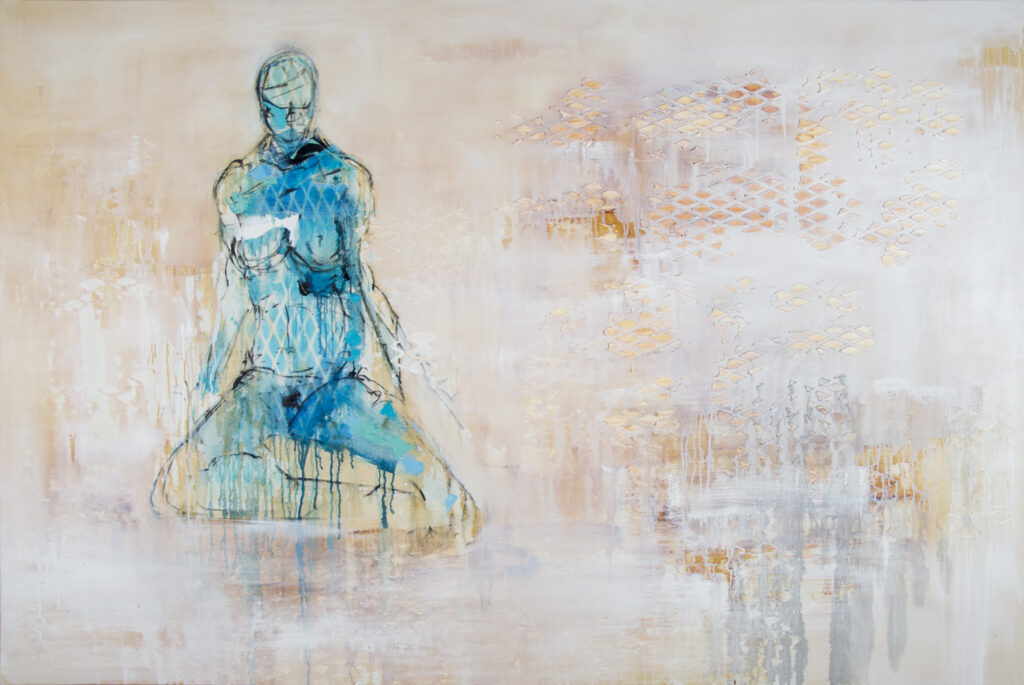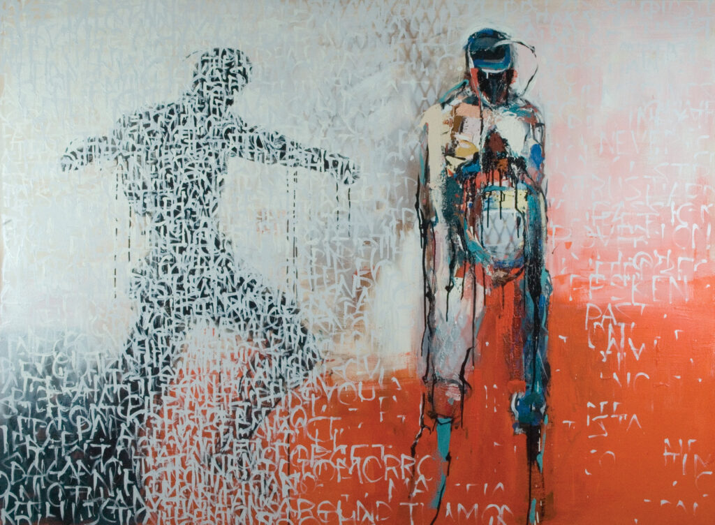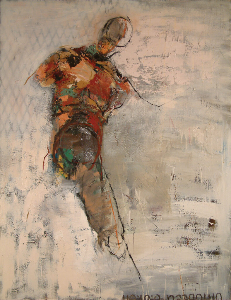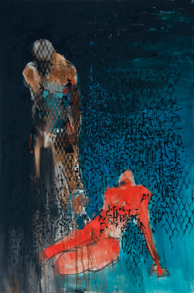 Drawing on my continued interest in the duality of presence and absence, these works use layered media, abstract figuration, and mesh-like grids to blur the line between figure and environment, perception and dissolution. Influenced by the mechanics of digital fragmentation and the tactile evidence of mark-making, the series embodies my ongoing interrogation of identity, systems, and the human condition. Dreamt Polaroids becomes a visual diary of unseen mental states—fragments of who we are, or once believed ourselves to be, suspended in the charged atmosphere of remembering.